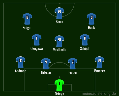 Ansonsten würde ich wenig bis gar nichts ändern. Okugawa und schöpf teilen sich den defensiv-kreativen Part und Krüger/Serra lässt man weiter zusammen wachsen.